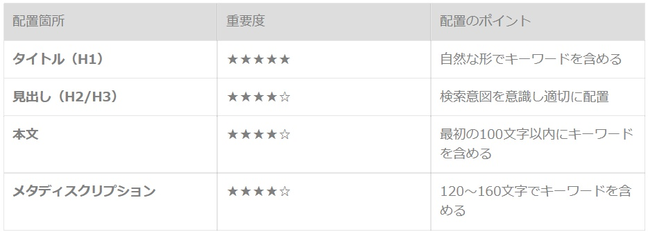 キーワードは、次の場所を意識して配置します。