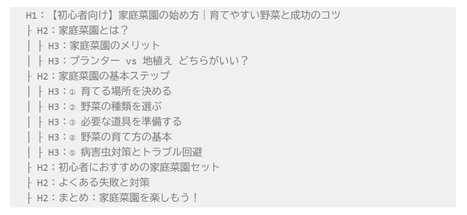 記事構成の例(家庭菜園の始め方)