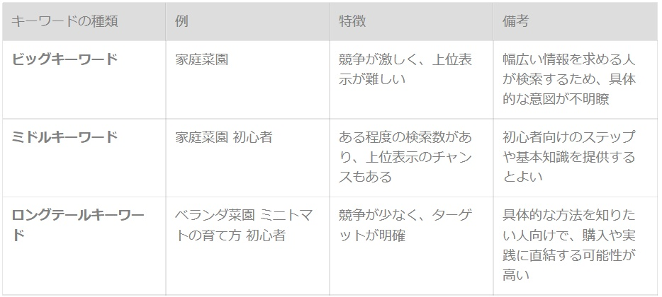例:「家庭菜園」というキーワードの場合